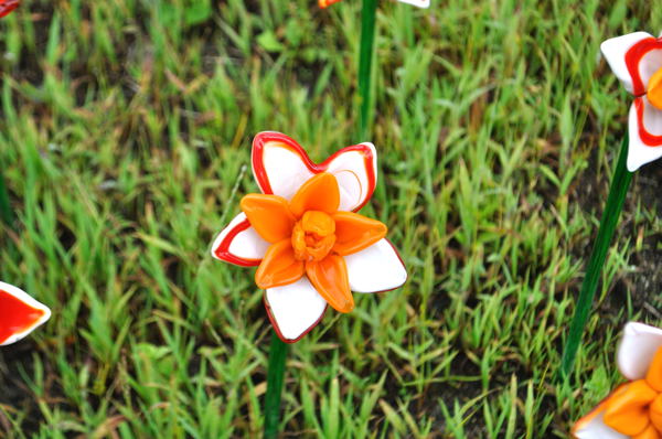 陶器水仙 スイセン すいせん 花 ガラス 一面 黄色 自然 公園 展示